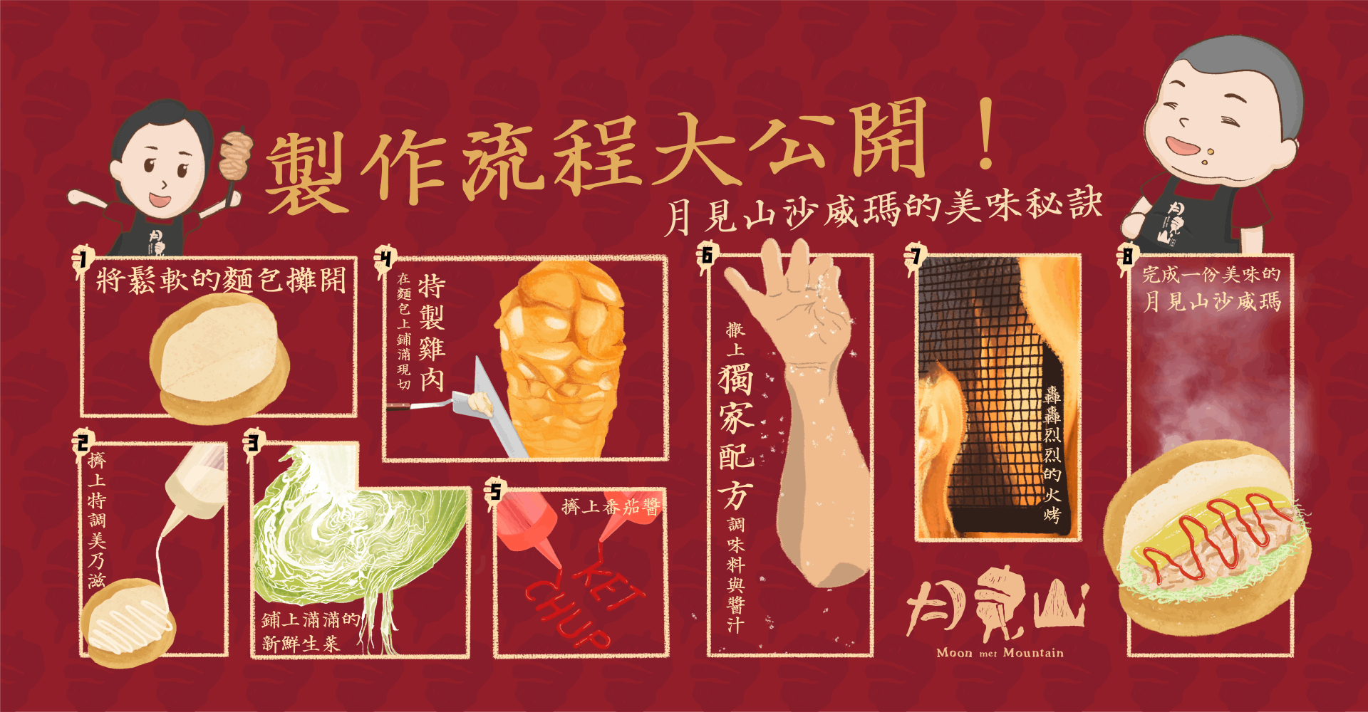 由月見山沙威瑪的二代,利用母親的姓氏「月」及父親名字的最後一個字「山」,父親與母親相見才有現在的沙威瑪事業,月與山是恆古以來優美的風景,月見山沙威瑪將像「月」及「山」一樣,永續經營,故「月見山」的名稱就此孕育出來。