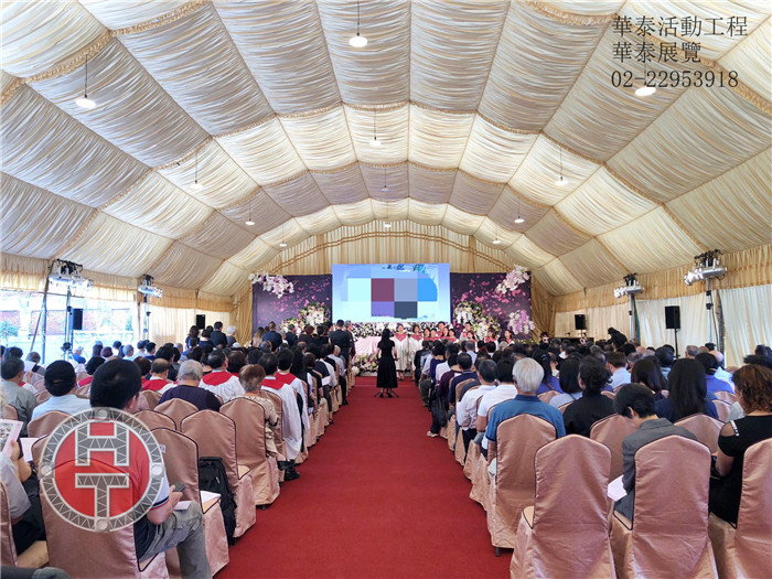 truss屋型帳/藍色地毯/布幔布置/電視牆/truss牌樓/貴賓椅/燈光/音響/現場布置