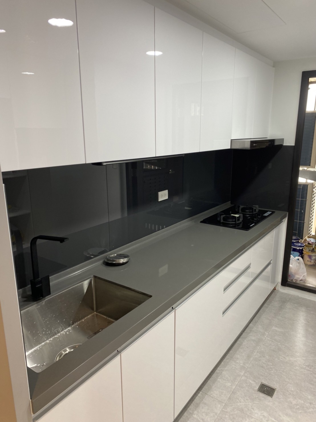 一字型285cm櫥櫃+冰箱吊櫃+電器櫃