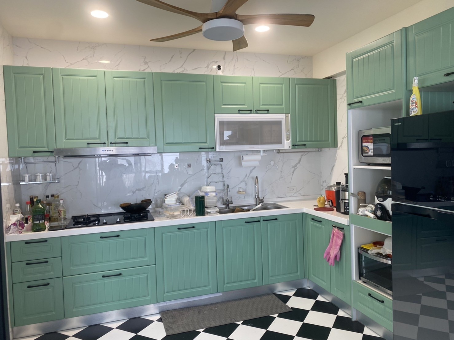 L型449cm櫥櫃+冰箱吊櫃+電器櫃