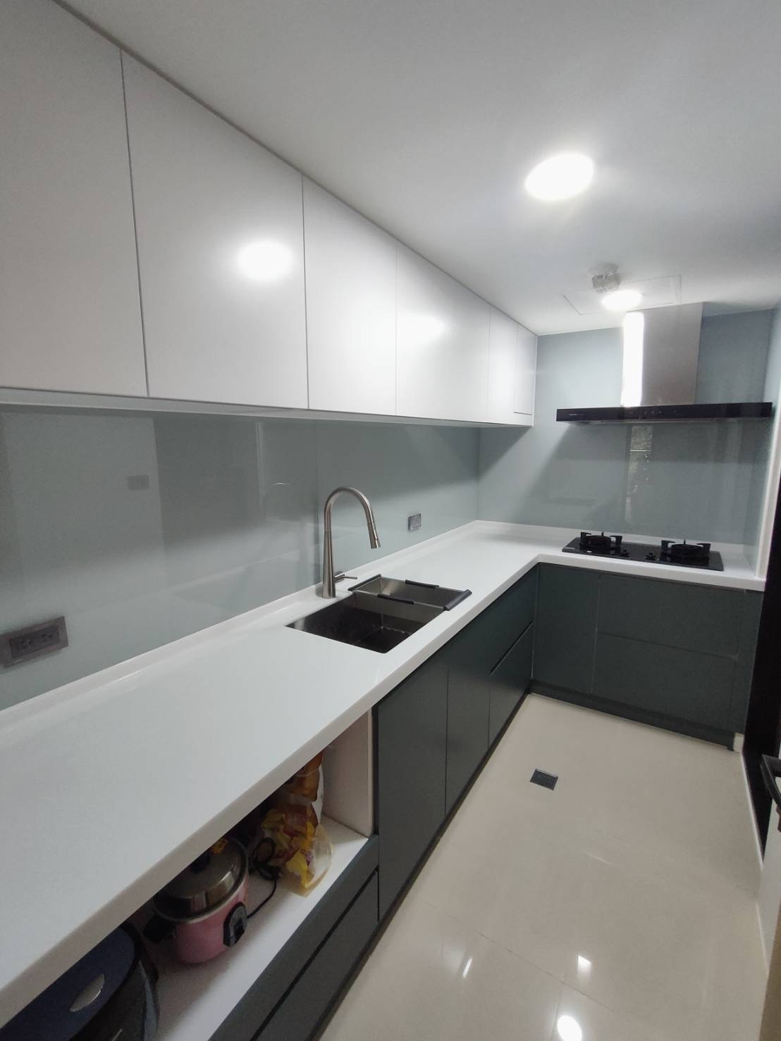 L型405cm櫥櫃+冰箱吊櫃+電器櫃