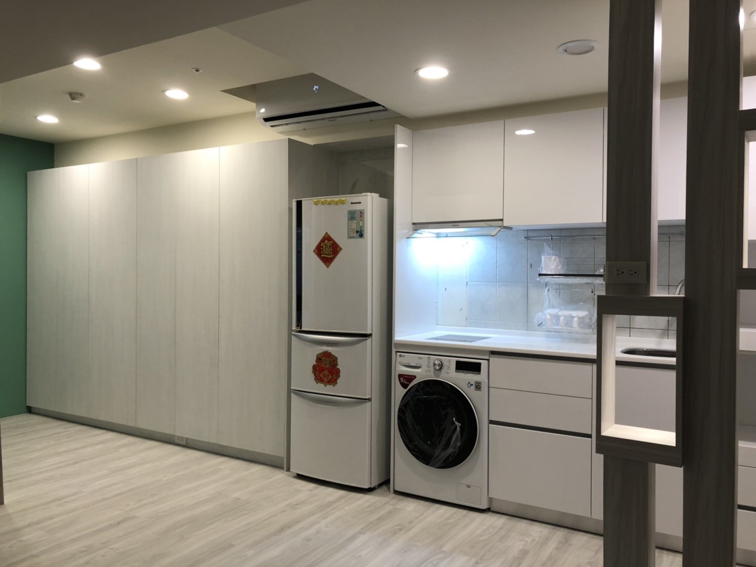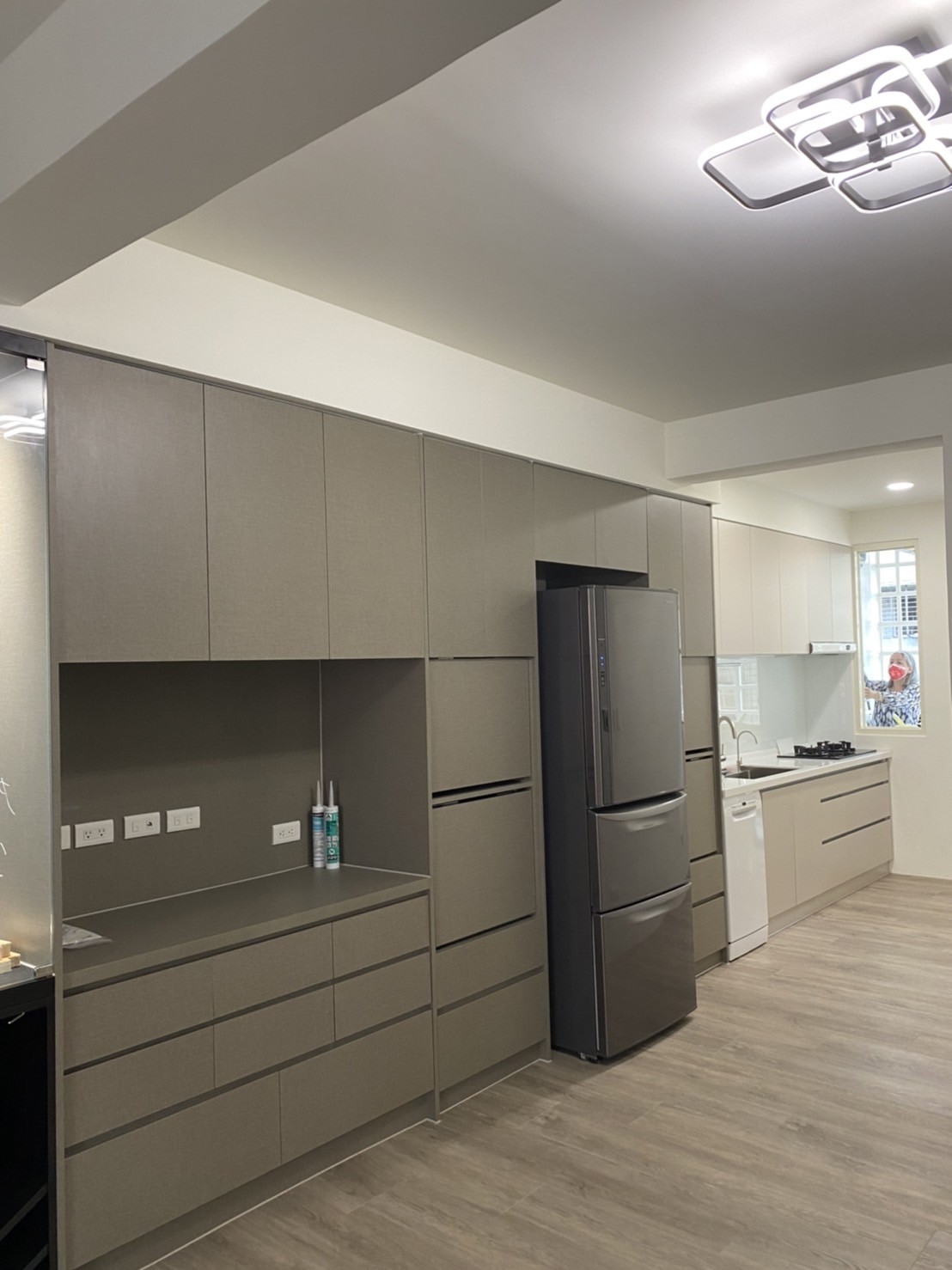一字型128cm後排櫃+電器櫃+冰箱吊櫃