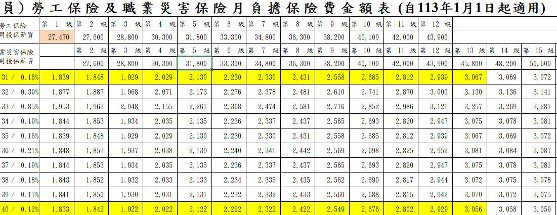 • 自113年1月1日起月繳1833元(職災費率調高) *以天計算*