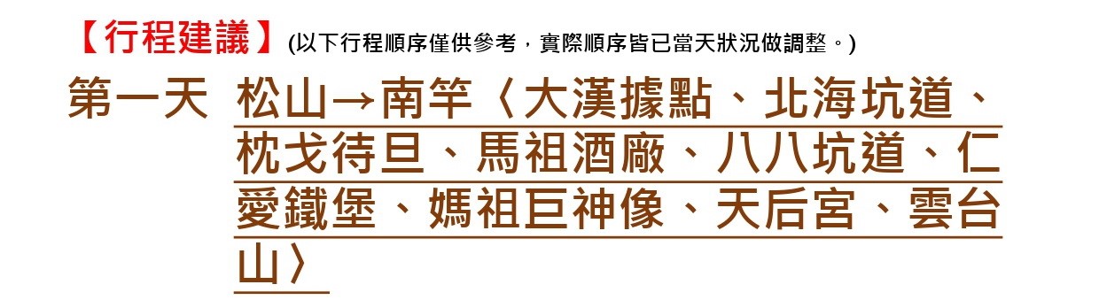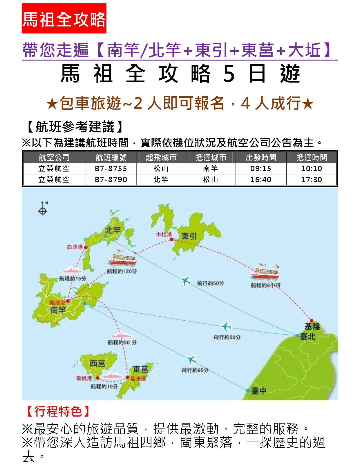 松山出發 → 馬祖5天包車遊~~**4人同行優惠價$19900/人**