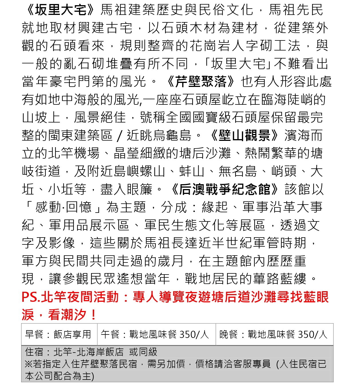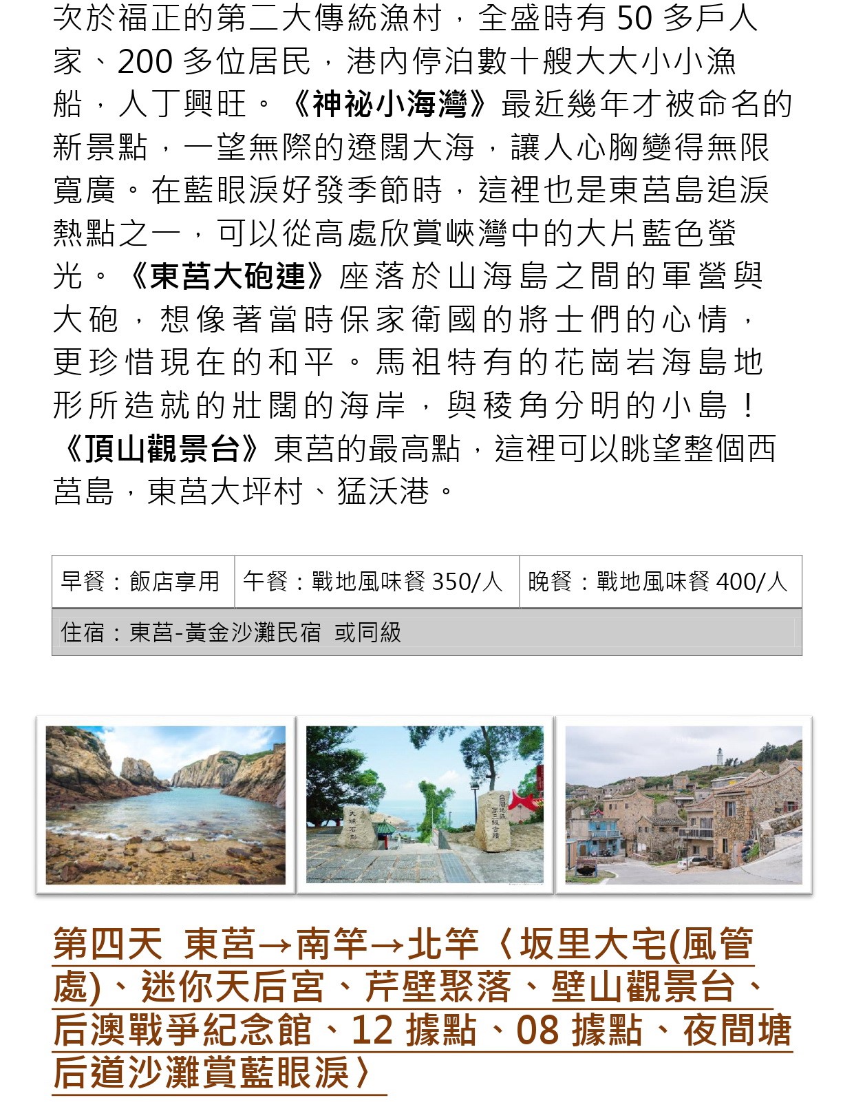 馬祖戰地風光5天全攻略~帶您尋找藍眼淚~全國大散拼2人即可報名