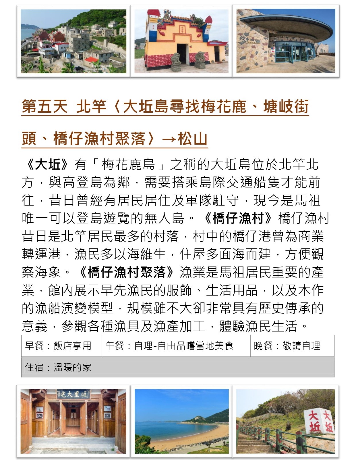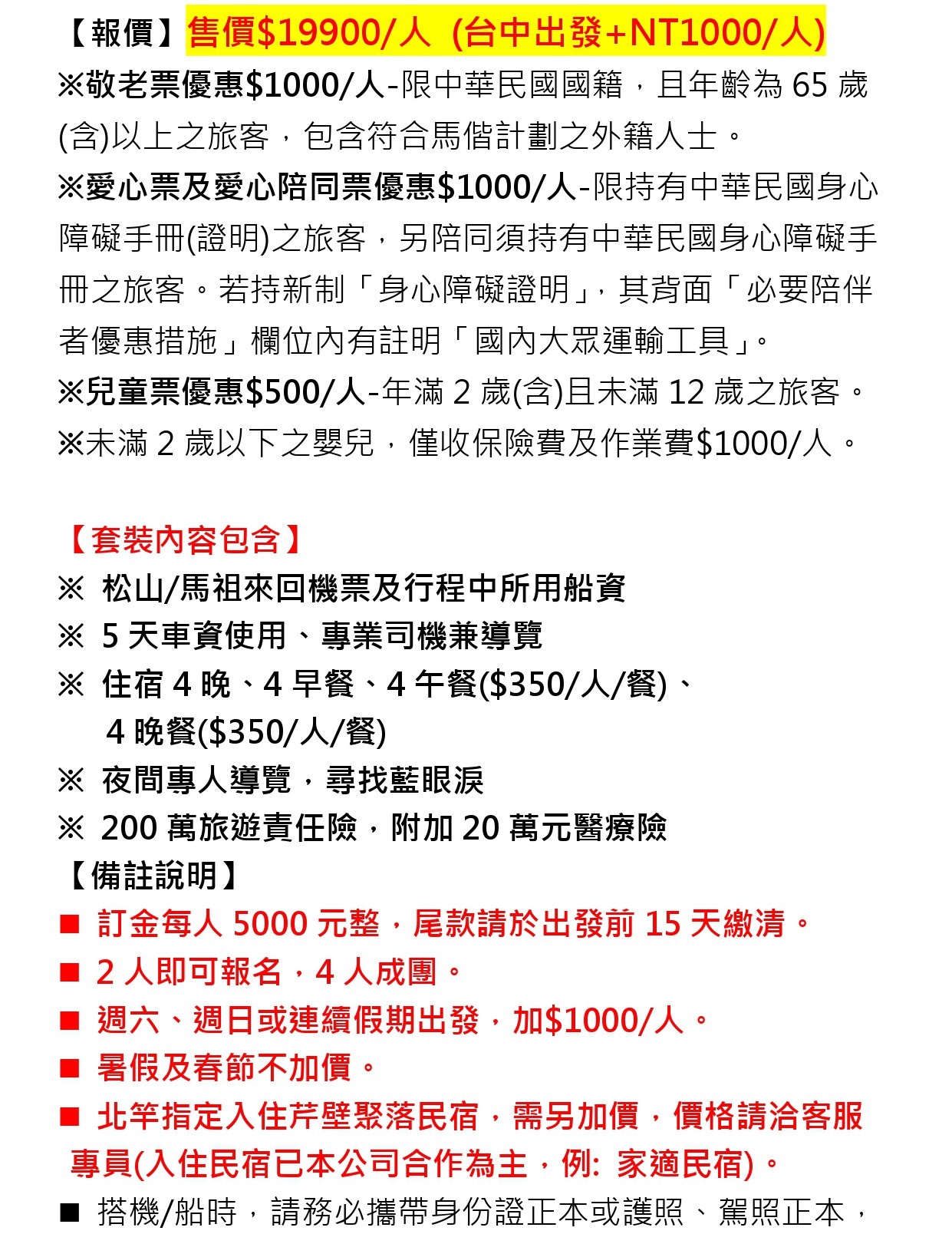 台中出發 → 馬祖5天包車遊~~**4人同行優惠價$20900/人**