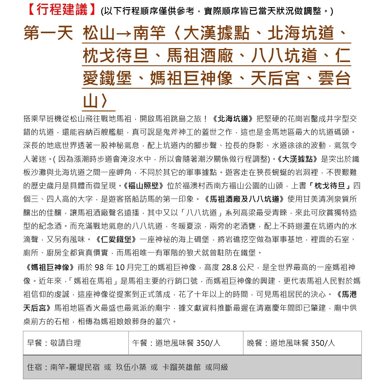馬祖 其他熱門行程推薦~