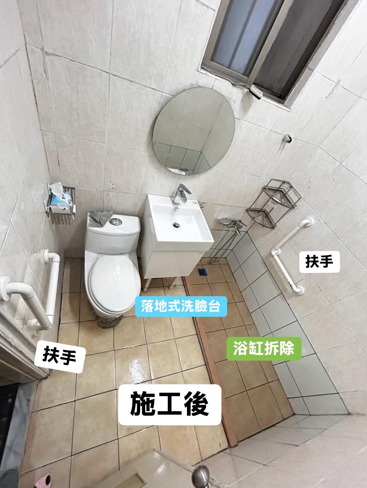 廁所翻新工程 增設五合一暖風機 拆除門框門檻與旁邊木櫃 增加...