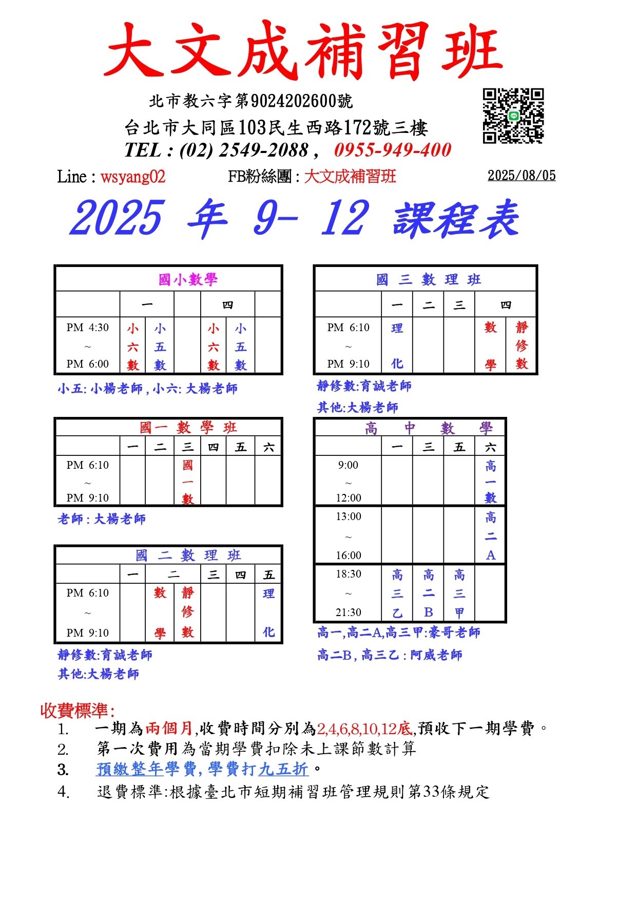 2025/09 新課表已排好,請參考,謝謝!