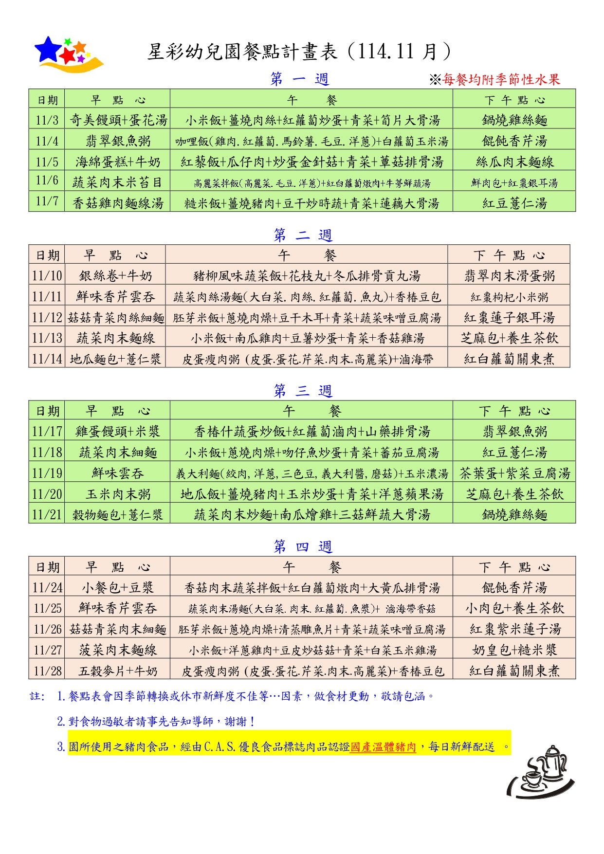 每月餐點