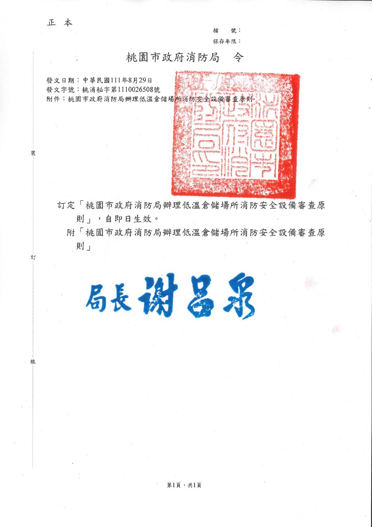 桃園市政府消防局辦理低溫倉儲場所 消防安全設備審查原則