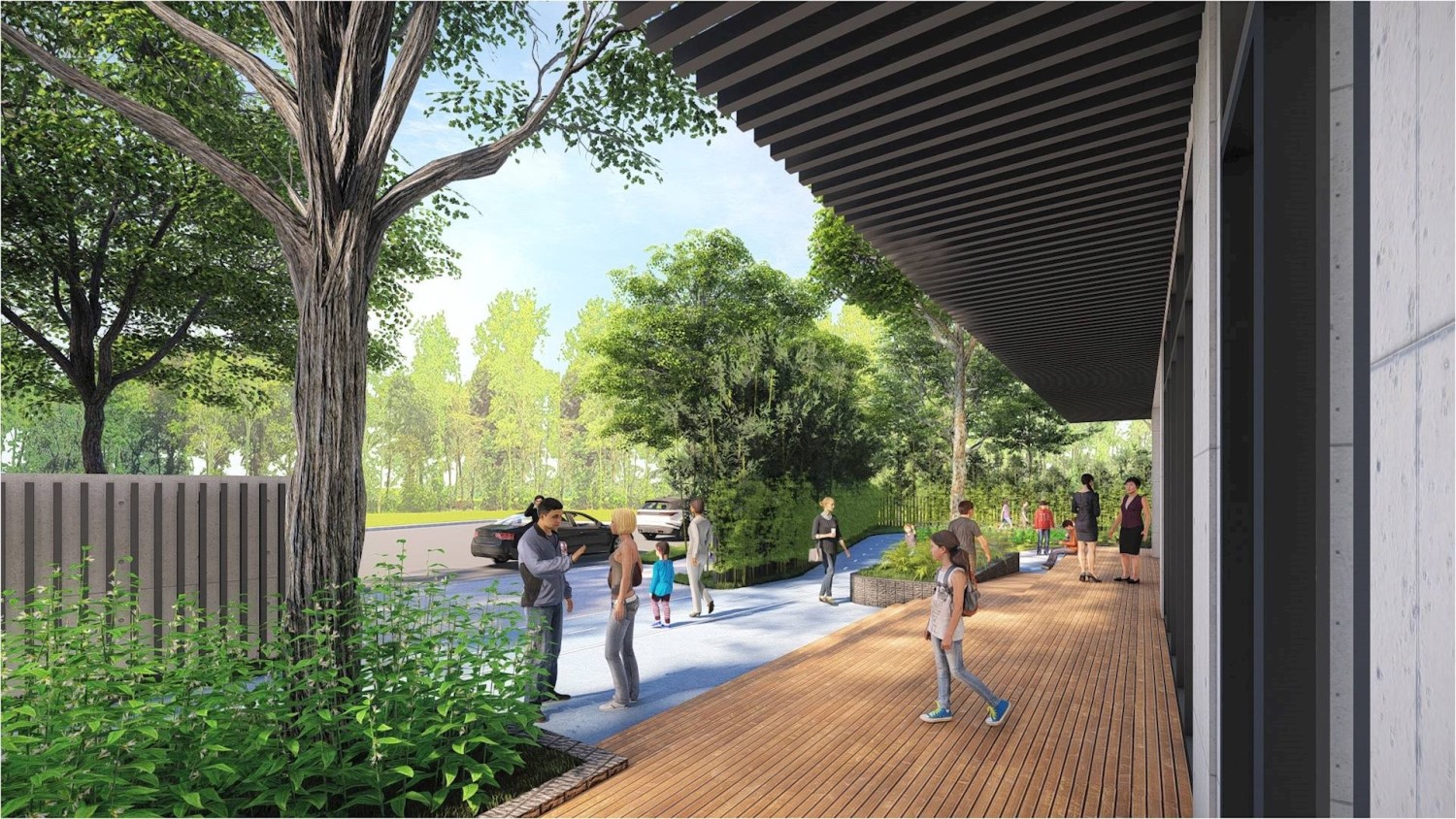 愉快無邊界的學習空間,以四周迴廊迎向戶外自然與鄰里,考量機能安全與進出的便捷性。