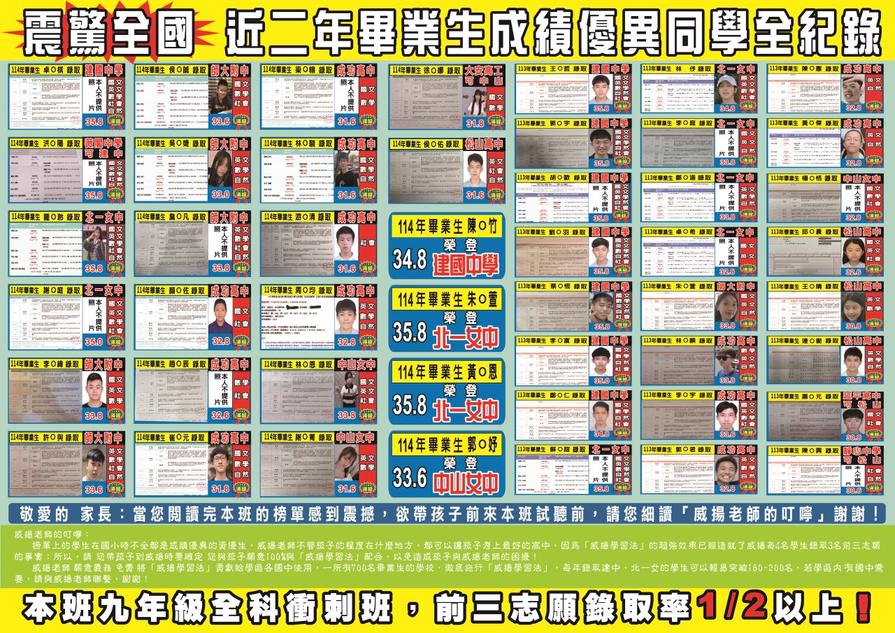 威揚數學邀請您立即預約試聽了解國三建北衝刺全科班