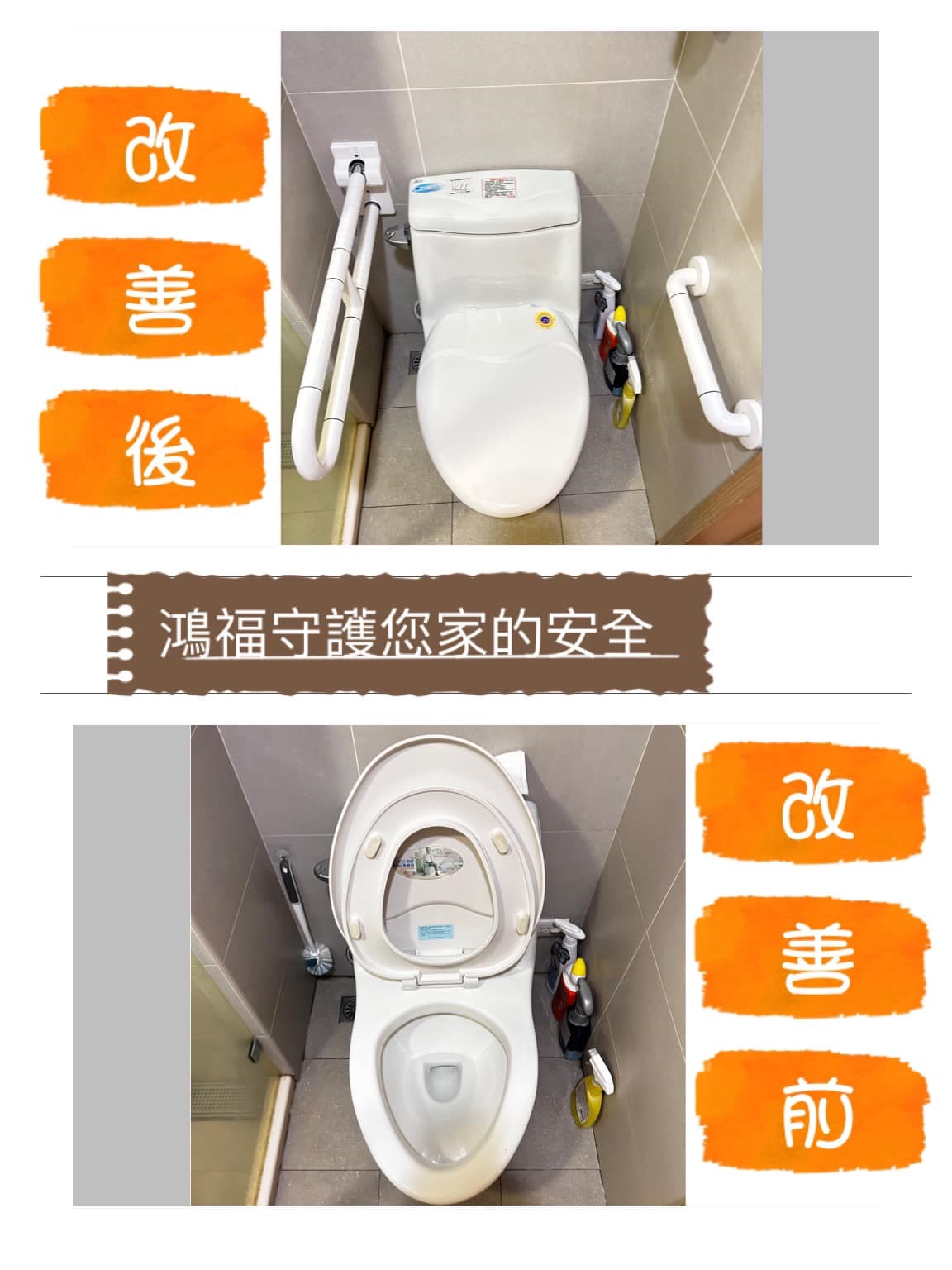 本公司專營居家無障礙改善,浴廁扶手、走廊扶手、樓梯扶手等,地面防滑施工,門檻降低或剃除,如有需求均可加LINE詢問。