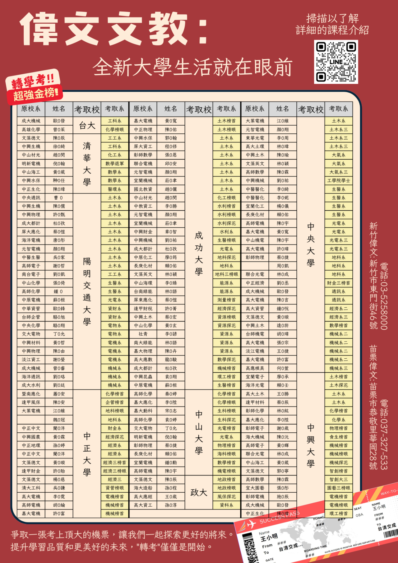 【偉文文教機構】歡迎您蒞臨偉文補習班官方網站,我們協助學生考取研究所、大學轉學考等項目,為台灣地區最具競爭力的金榜品牌,有任何問題歡迎立即諮詢,我們將竭誠為您服務!