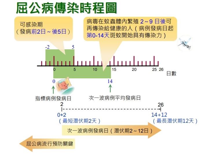 藉由病媒蚊傳播,不會人傳人,台灣主要的傳播媒介以埃及斑蚊及白線斑蚊為主。