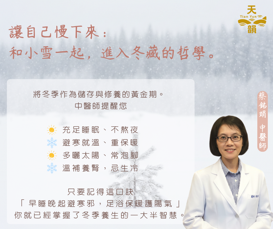 小雪時節是「冬藏」的開始,養生核心在於「養精蓄銳,溫腎防寒」,為來年春天蓄積能量。