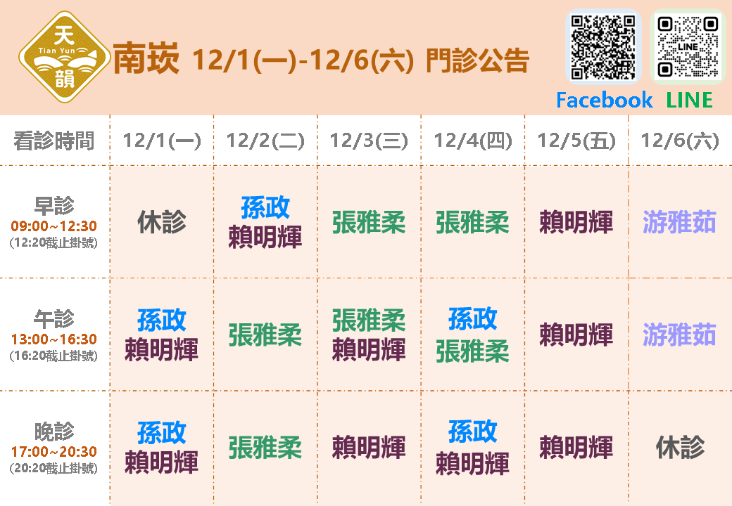 📢孫政醫師看診時間12/1(一)~12/13(六)