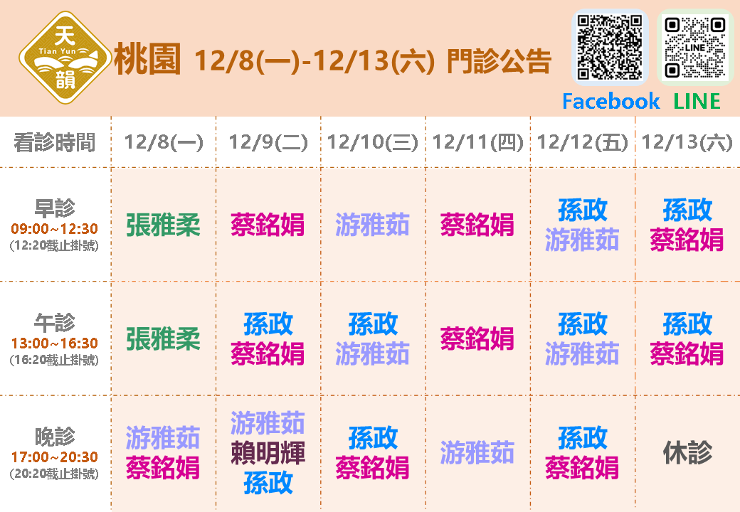 📢孫政醫師看診時間12/1(一)~12/13(六)