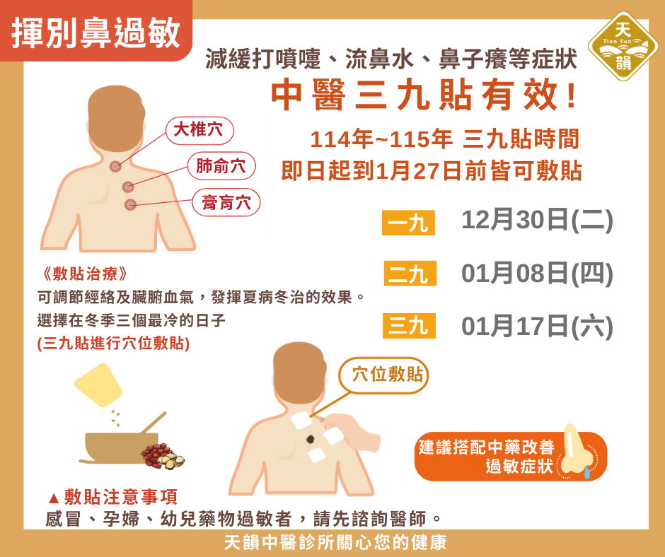 中醫三九貼有效! ☀️114年-115年三九貼時間 ( 即日起到1月27日前皆可敷貼 )