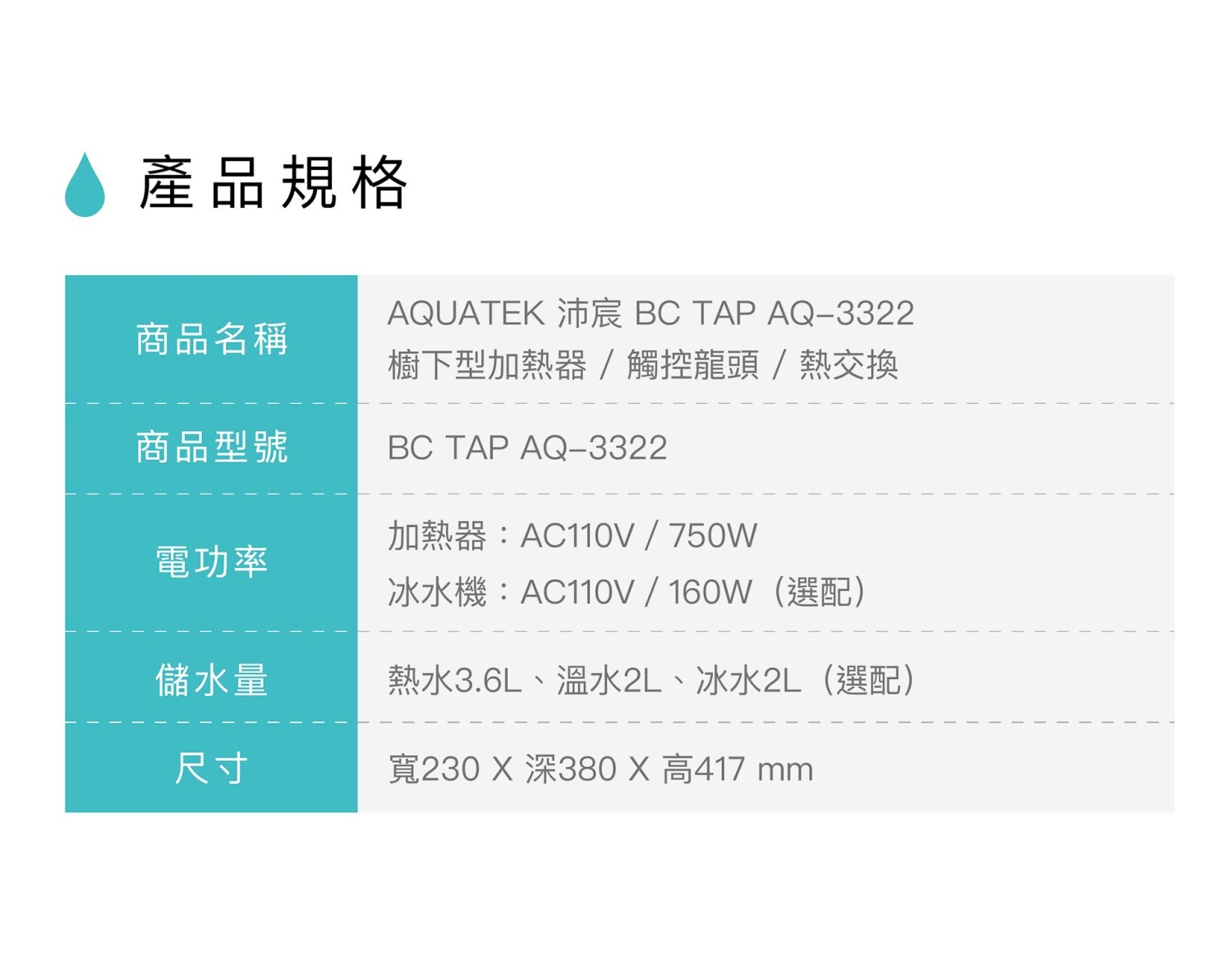 AQUATEK 沛宸|BC TAP AQ-3322櫥下型加熱器 / 觸控龍頭 / 熱交換(科技銀 / 玫瑰金 / 消光黑 / 閃耀黑 / 復古銅)