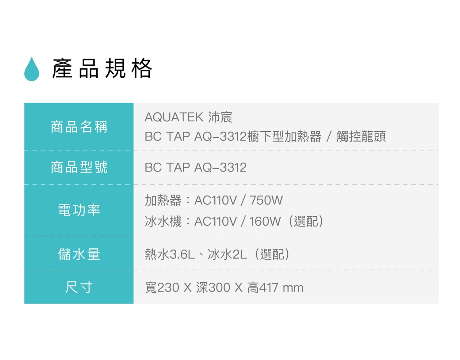 AQUATEK 沛宸|BC TAP AQ-3312櫥下型加熱器 / 觸控龍頭(科技銀 / 玫瑰金 / 消光黑 / 閃耀黑 / 復古銅)