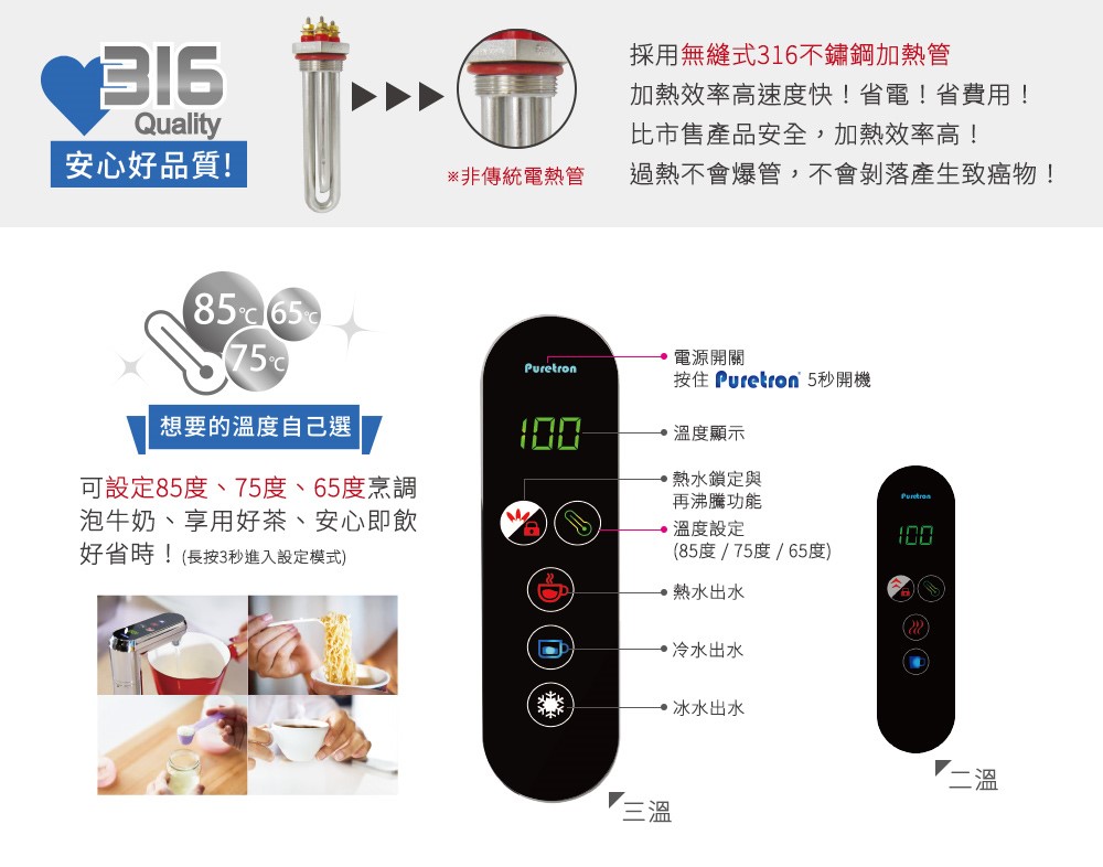 產品介紹 > 電解水機 / 水素水機 > 【獨家消光黑款】普立創 觸控式三溫熱飲機(贈三道式快拆軟化抑菌濾水器)