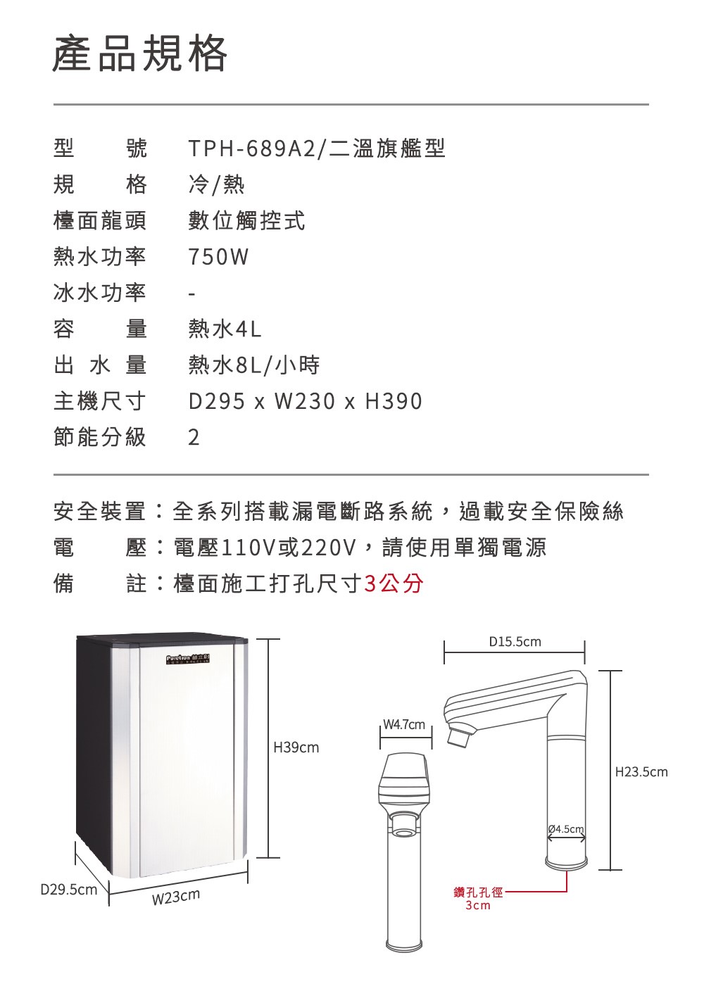 ◆ 質感消光黑新品登場 ◆ 觸控式出水龍頭、情境出水燈 ◆ 烹調、泡牛奶、享用好茶,便利取水 ◆ 無縫316不鏽鋼加熱管,省電加熱效率高 ◆ 買即贈快拆軟化濾水器(市價$5680)、漏水斷路器、基本到府安裝