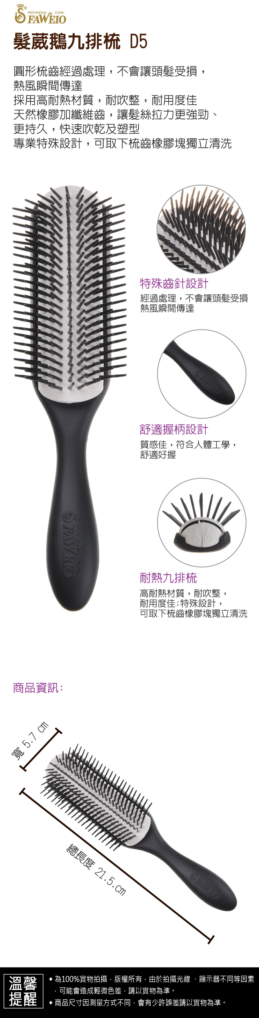 商品規格 : 品牌名稱 : 髮葳鵝 商品品名 : 髮葳鵝九排梳 D5 商品尺寸 : 總長度21.5cm x 寬5.7cm 商品顏色 : (二款可選) D5-1(白肉) D5-2(紅肉)