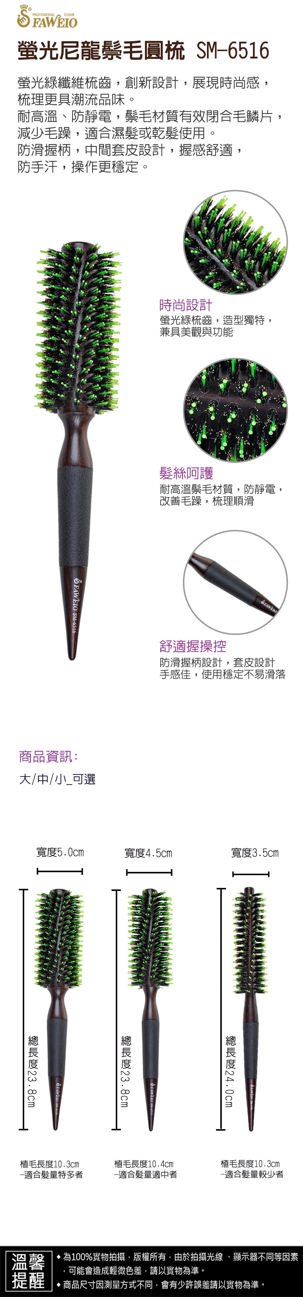 商品品名 : 螢光尼龍鬃毛圓梳 SM-6516