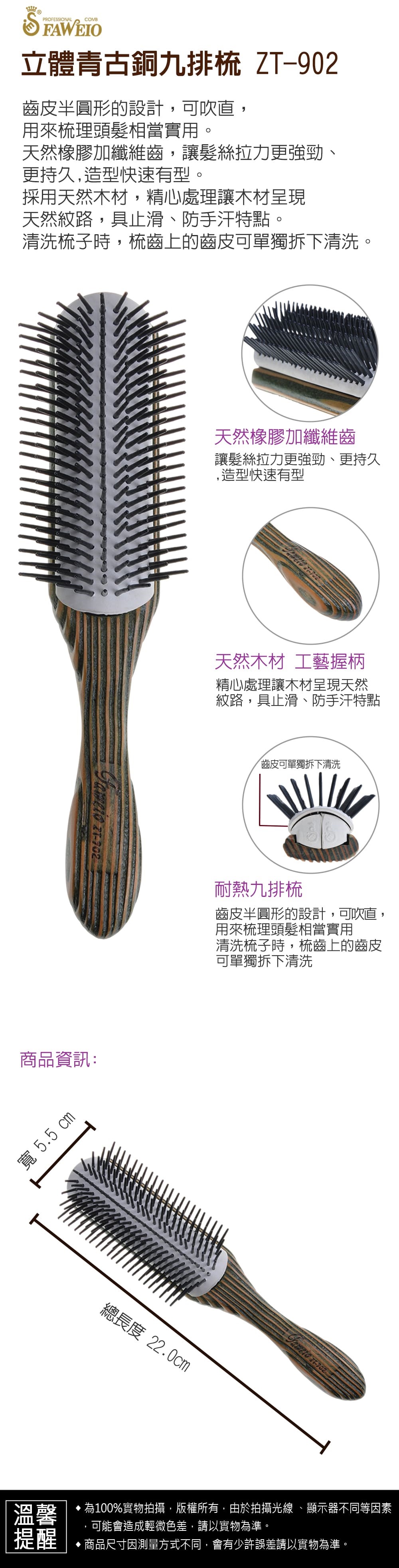商品規格 : 品牌名稱 : 髮葳鵝 商品品名 : 立體青古銅九排梳 ZT-902 商品尺寸 : 總長度22.0cm x 寬5.5cm