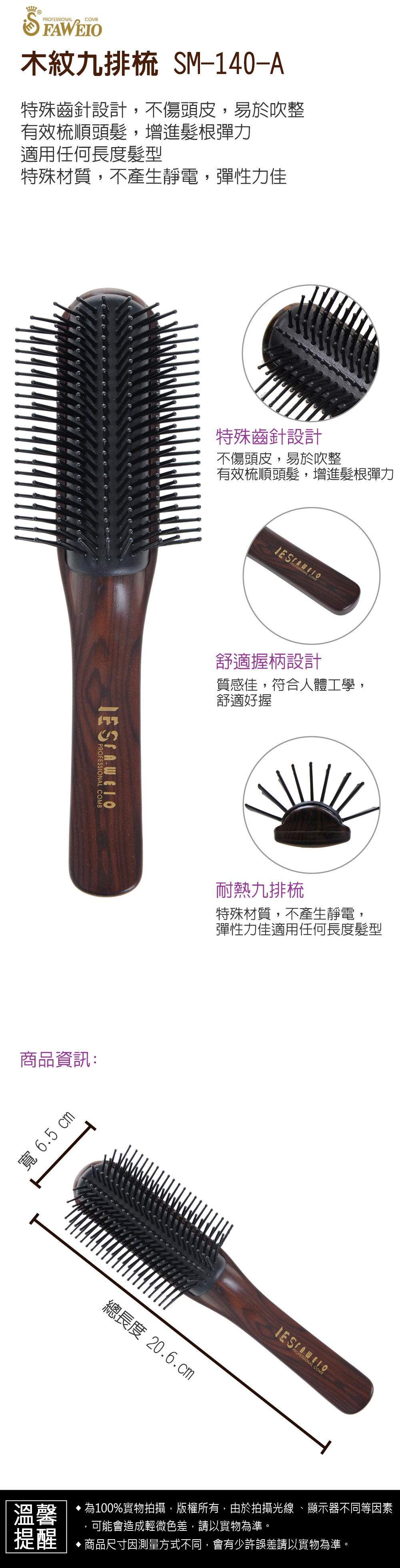 商品規格 : 品牌名稱 : 髮葳鵝 商品品名 : 木紋九排梳 SM-140-A 商品尺寸 : 總長度20.6cm x 寬6.5cm