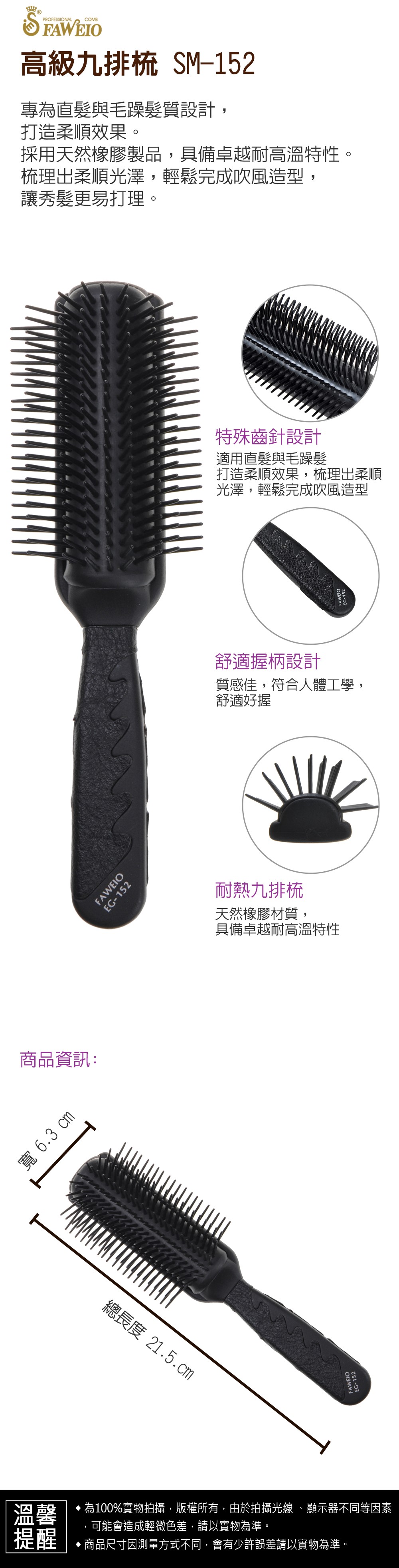 *適用於直髮、毛躁髮質 *天然橡膠製品,耐高溫 *梳整柔順光亮、易於吹風造型 台灣製造品質保證