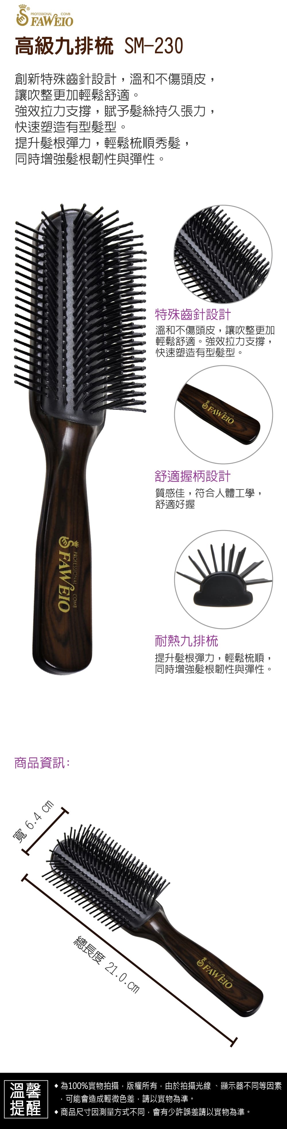 商品規格 : 品牌名稱 : 髮葳鵝 商品品名 : 高級九排梳 SM-230 商品尺寸 : 總長度21.0cm x 寬6.4cm