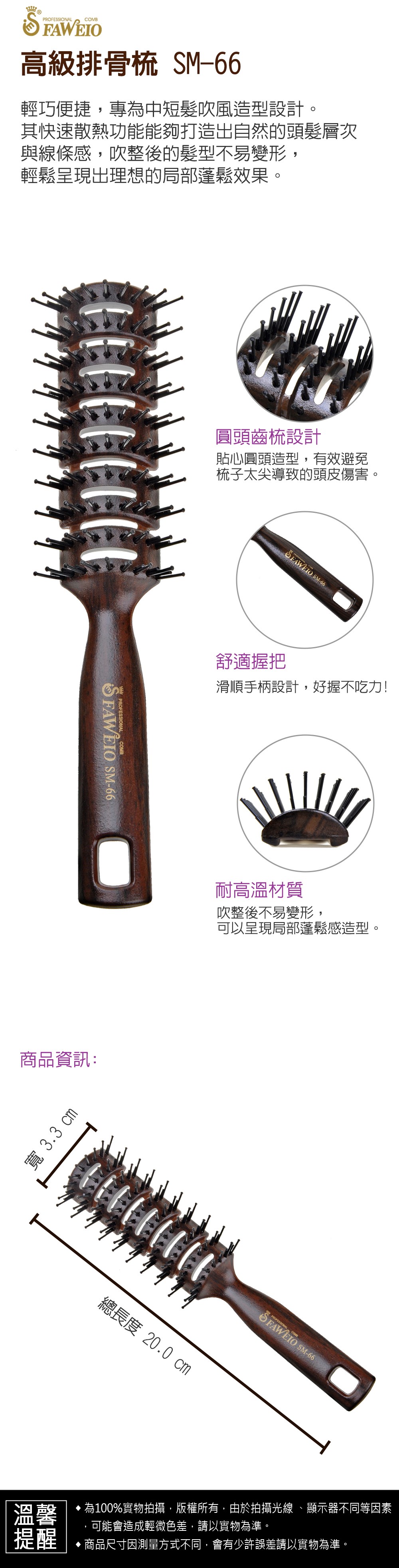 商品規格 : 品牌名稱 : 髮葳鵝 商品品名 : 高級排骨梳 SM-66 商品尺寸 : 總長度20.0cm x 寬3.3cm 商品顏色 : (二款可選) SM-66-1 松木花色 SM-66-2 黑霧色