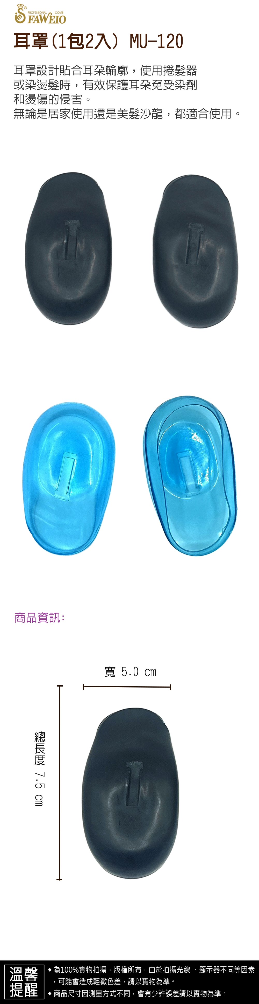 商品規格 : 品牌名稱 : 髮葳鵝 商品品名 : 耳罩(1包2入) MU-120 商品尺寸 : 總長度5.0㎝ x 寬7.5㎝/單個 商品顏色 : (二色可選) MU-120-1耳罩_黑色 MU-120-2耳罩_藍色