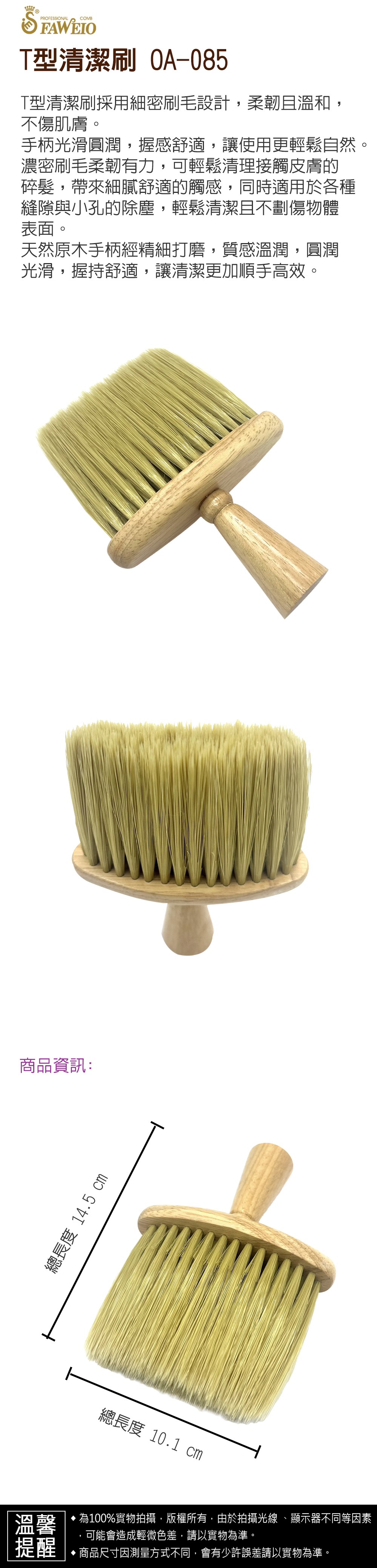 商品規格 : 品牌名稱 : 髮葳鵝 商品品名 : T型清潔刷 OA-085 商品尺寸 : 總長度14.5㎝ x 寬10.1㎝ 商品材質 : 原木+纖維毛 注意事項 : 1.尺寸為手工測量,因測量方式不同,會有少許誤差!皆以實品為準。 2.請經常清潔,使用後輕拍毛刷即可將雜物清除。 3.避免水氣。 4.請置於乾燥陰涼處。