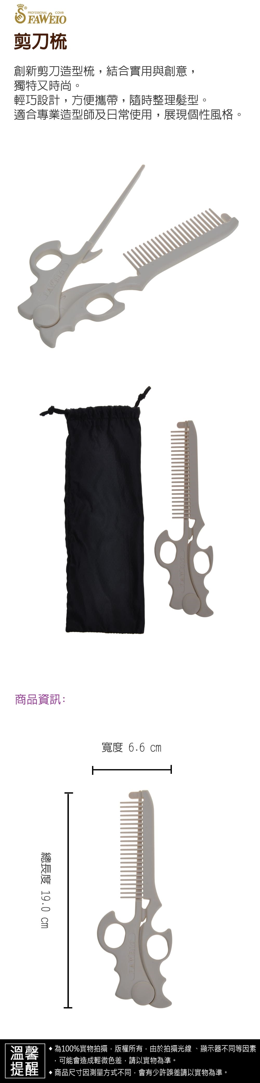商品規格 : 品牌名稱 : 髮葳鵝 商品品名 : 剪刀梳 商品尺寸 : 總長度19.0㎝ x 寬6.6㎝ 商品材質 : 塑膠