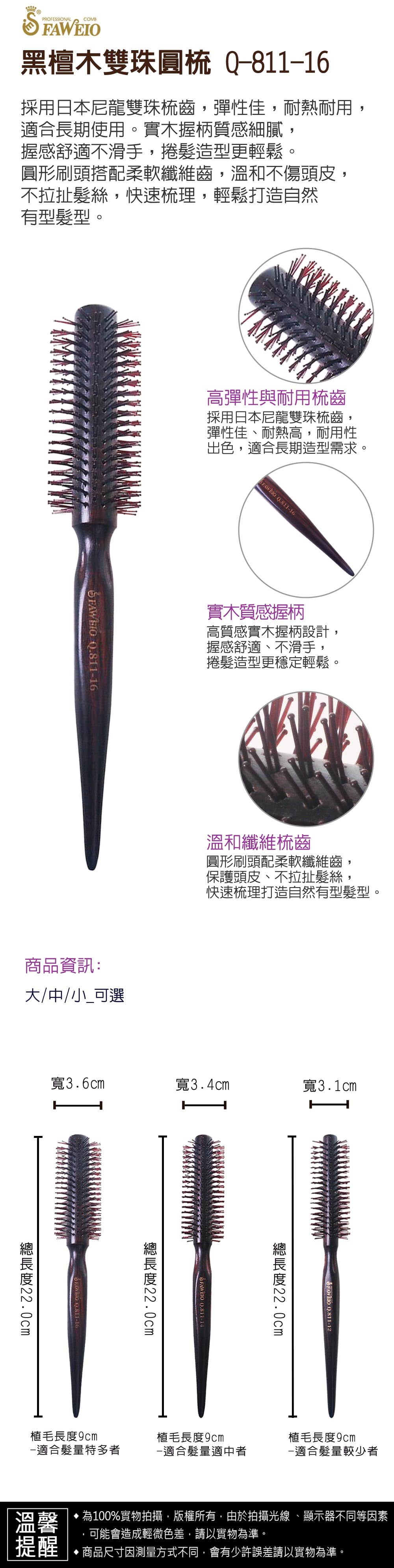 商品品名 : 黑檀木雙珠圓梳 Q-811-16
