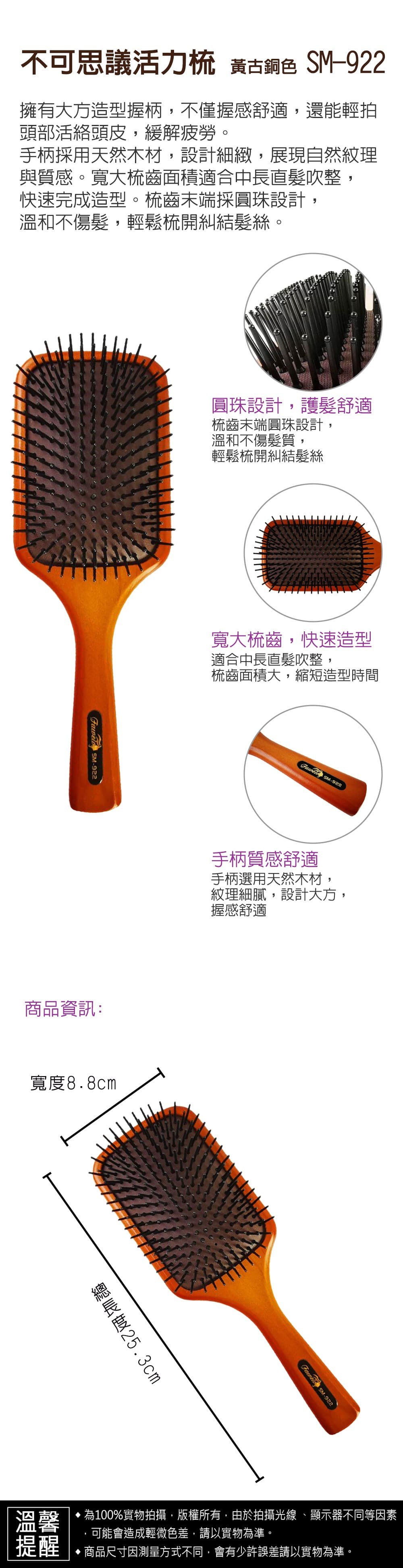 商品規格 : 品牌名稱 : 髮葳鵝 商品品名 : 不可思議活力梳(黃古銅色) SM-922 商品尺寸 : 總長度25.3cm x 寬8.8cm