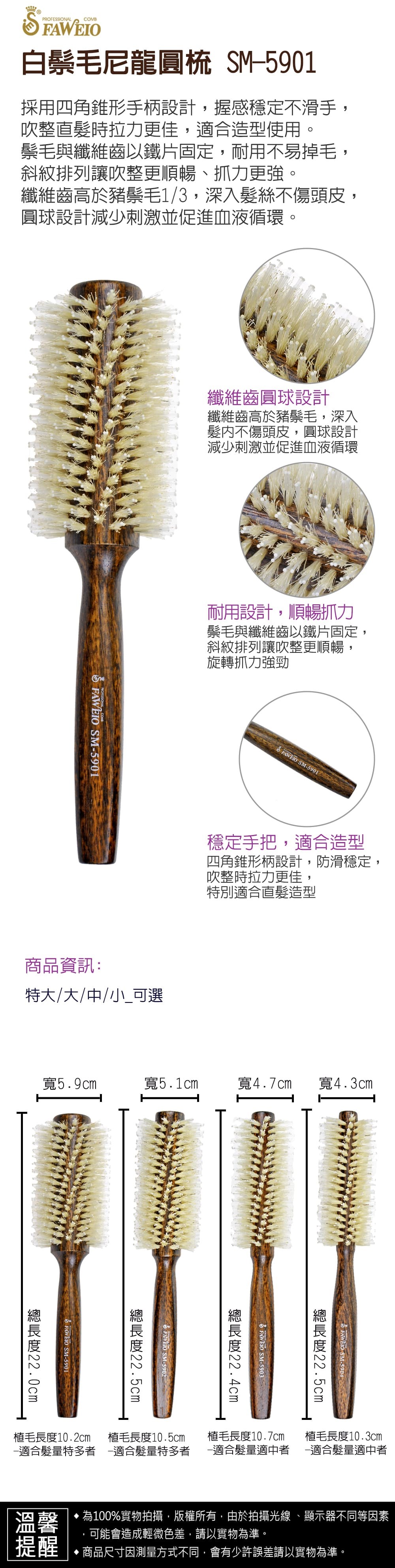 商品品名 : 白鬃毛尼龍圓梳 SM-5901