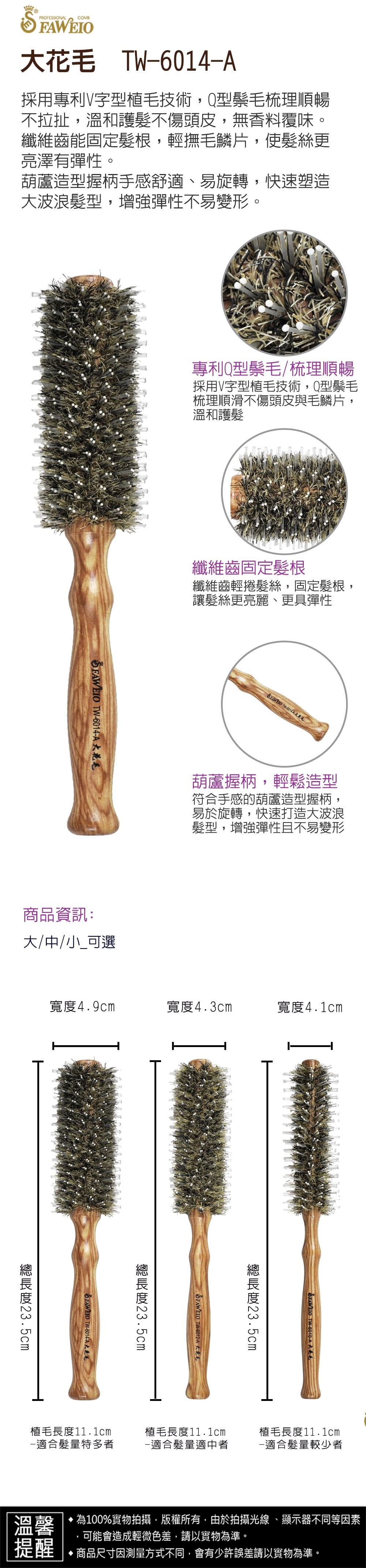5.請勿置於潮濕地方,以免鬃毛受潮發霉。