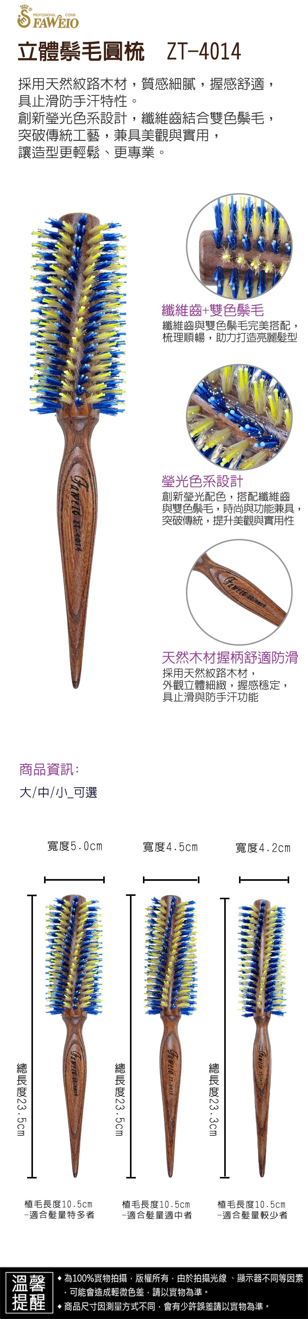 商品品名 : 立體鬃毛圓梳 ZT-4014