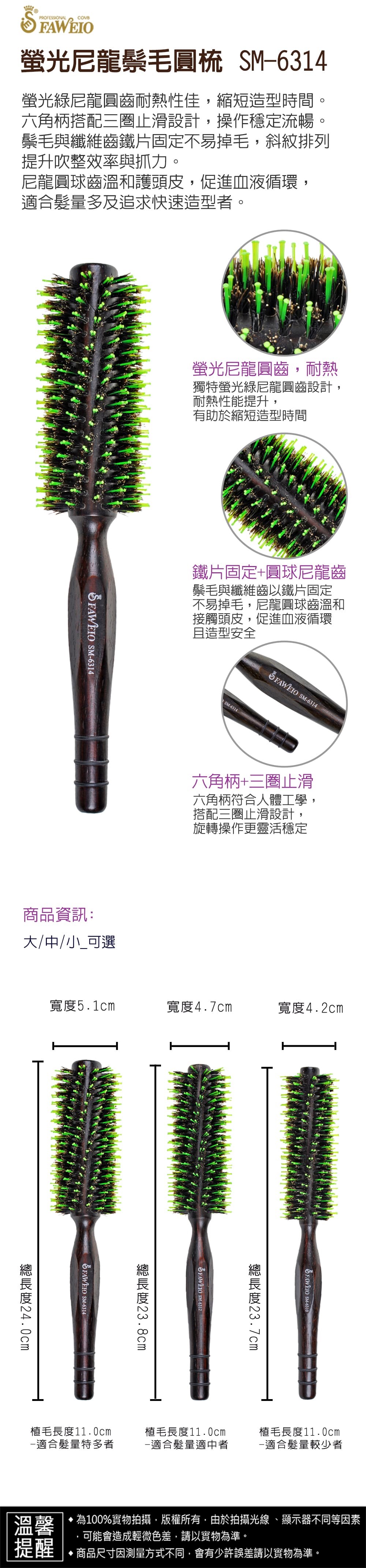 商品品名 : 螢光尼龍鬃毛圓梳 SM-6314