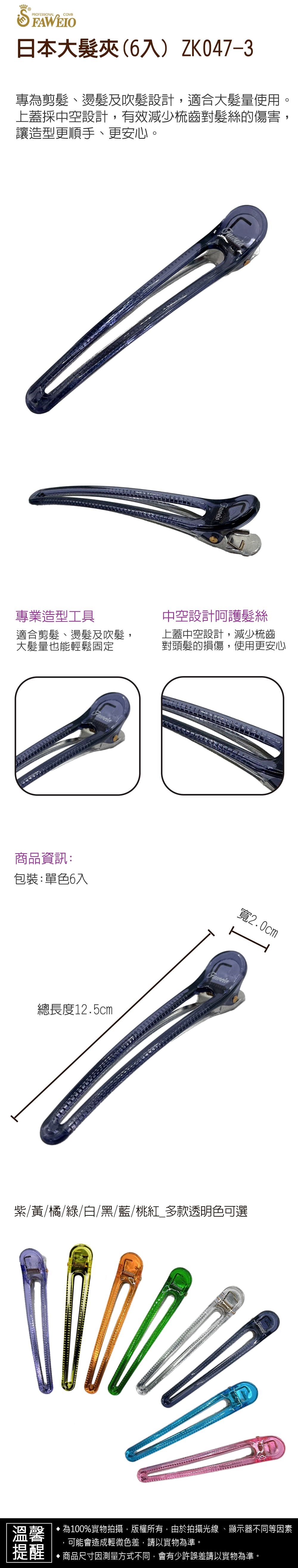 商品品名 : 日本大髮夾(6入) ZK047-3