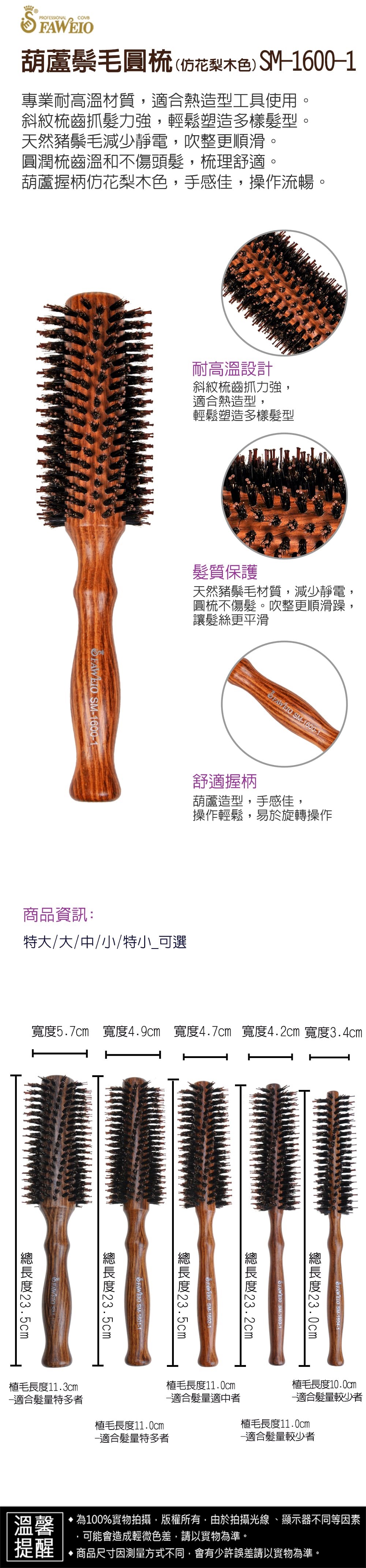 商品品名 : 葫蘆鬃毛圓梳(仿花梨木色) SM-1600-1