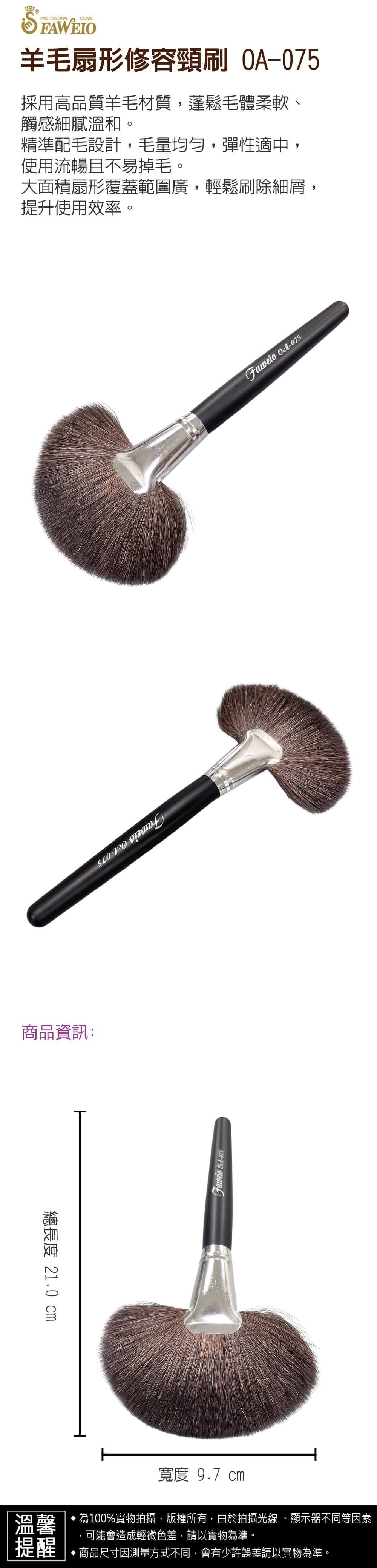 商品規格 : 品牌名稱 : 髮葳鵝 商品品名 : 羊毛扇形修容頸刷 OA-075 商品尺寸 : 總長度21㎝ x 寬9.7㎝ 商品材質 : 原木+羊毛