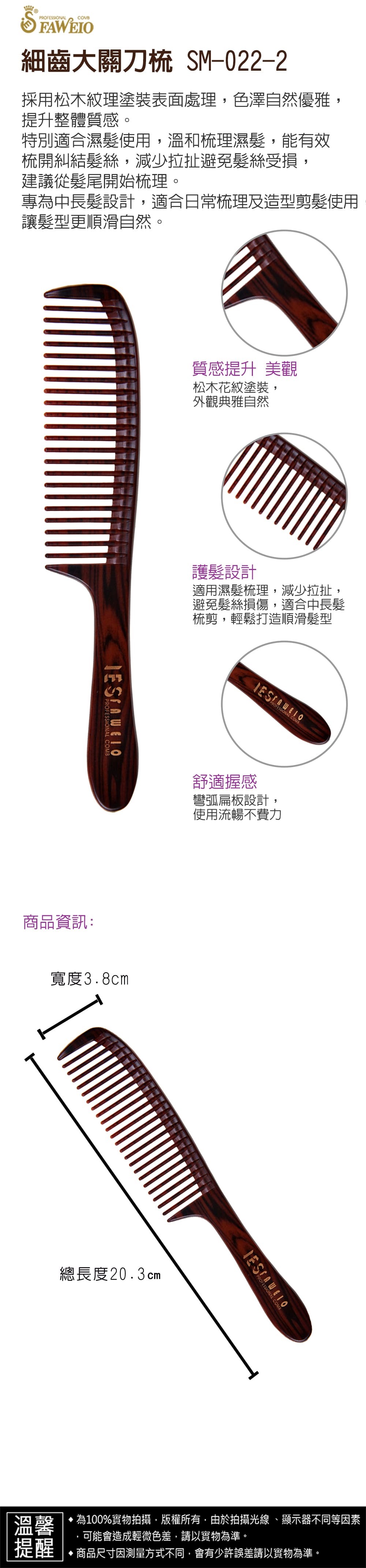 商品規格 : 品牌名稱 : 髮葳鵝 商品品名 : 細齒大關刀梳 SM-022-2 商品尺寸 : 總長度20.3㎝ x 寬3.8㎝ 商品材質 : 塑膠