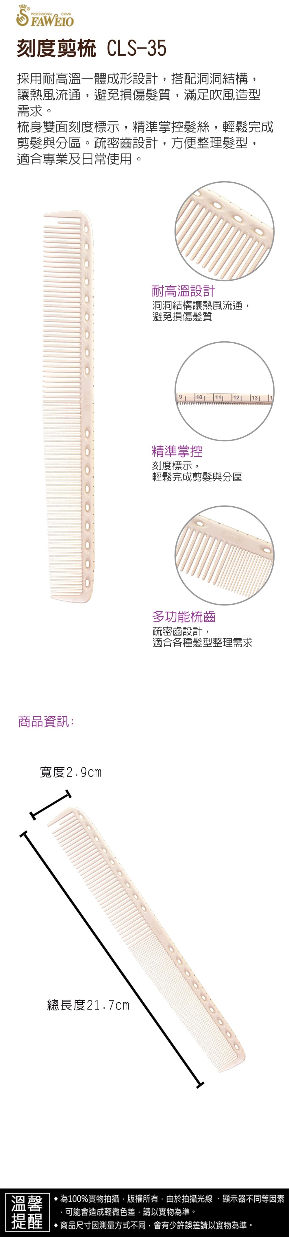 商品規格 : 品牌名稱 : 髮葳鵝 商品品名 : 刻度剪梳(象牙白) CLS-35 商品尺寸 : 總長度21.7cm x 寬2.9cm 商品材質 : 高性能工程塑膠
