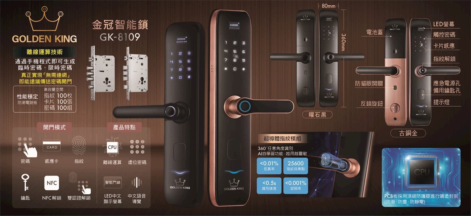 離線運算技術 數據統計及記錄功能 防貓眼開門設計 防尾隨設計 C級鎖心